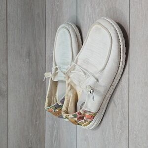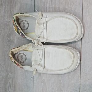 Hey Dude Womens Wendy Funk Chambray White Abstract Loafer Slip on shoes 8