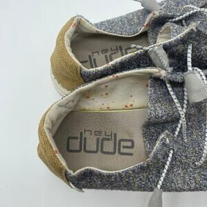 Hey Dude Women's size 9 Mustard Mix Gray Tan Wendy Slip-On Shoes. Hey Dude brand women's shoes in a size 9. Style is the Wendy slip-on shoe. Gray colorway with tan backs. In great pre-owned condition, see photos for more details. Always feel free to ask any questions you may have! Reasonable offers accepted.