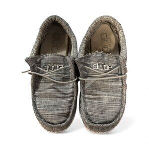Hey Dude Youth Size 2 Wally Shoes Gray Stripe Lightweight Casual Slip-On