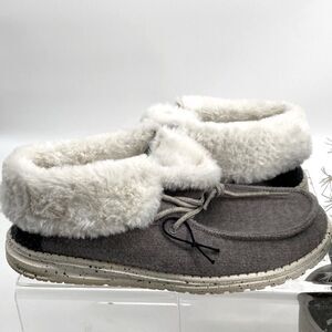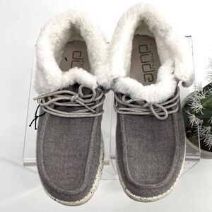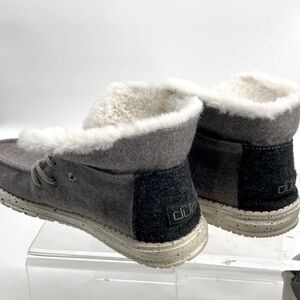 Hey Dude Britt Ankle Fold Casual Bootie Faux Fur Lace-Up Grey Women's 11