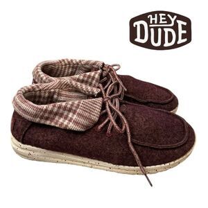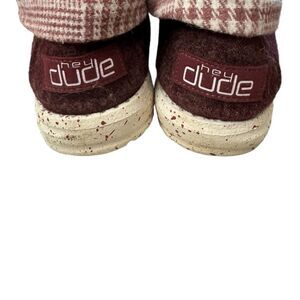 Hey Dude Women's Britt Houndstooth Burgundy Shoes 7