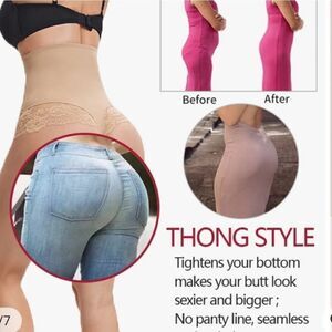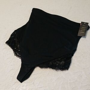 Hey Girl Black Control Top Thong Panty NWT Lace Size Large