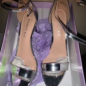 Almond-toe ankle-strap dress sandals with adjustable buckle closure