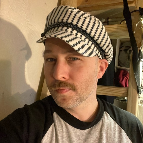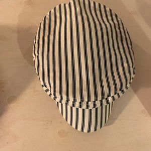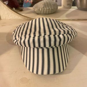 Navy blue and white cap with braided navy blue leather detailing. Only worn once for the picture I took of myself.