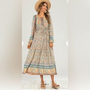 Hey Samy Smock Midi Dress In Blue & Mint Mixed Floral Printed Size M