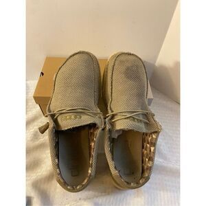 Hey dudes Wally Sox beige stain hole on toe size 14 USED