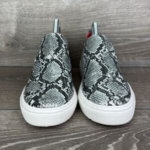 Hey Dude Peyton Snake Grey Women’s Sz 7 Python Print Pull On Ankle Boot Sneakers in excellent condition. Experience the perfect blend of style and comfort with Hey Dude's sneakers, featuring a striking gray snakeskin pattern and vibrant red accents. These low-top sneakers boast a classic silhouette with a rounded toe and are designed with white rubber soles for a sporty yet premium look. Ideal for casual outings, they offer a unique aesthetic that stands out effortlessly. Get these gorgeous sneakers today, ladies.