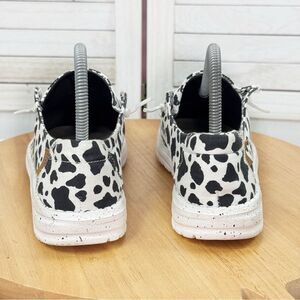 Hey Dude Wendy Milky Way Cow Print Canvas Slip On Shoes White Black Womens 6