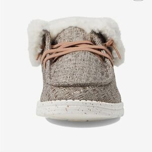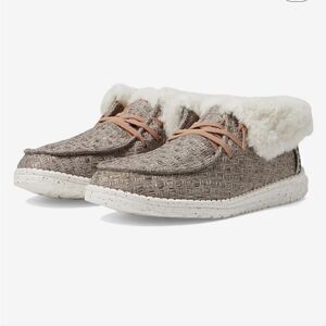 Say goodbye to cold weather with the HeyDude Wendy Fold Boot Slippers. This boot offers an abundance of comfort, embracing your feet with a cushioning foam insole, faux-shearling lining, and a fold-over upper. Easily slide your feet in and step with a light feel, all thanks to the stretchy elastic laces and the lightweight outsole.