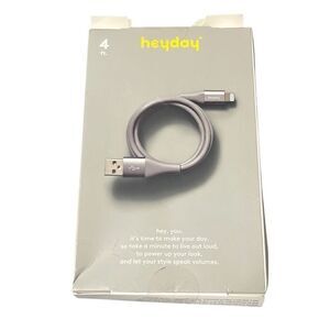 Heyday 4' Lightning to USB-A Round Cable Apple Iphone Ipad Gray Open Box New