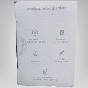 Bring vintage vibes to modern sound with this Heyday Wireless Retro Speaker. Bluetooth-enabled with up to 8 hours of playback, this compact speaker delivers clear audio in a stylish retro design. Features a faux-leather carry strap, built-in controls, and USB-C charging.