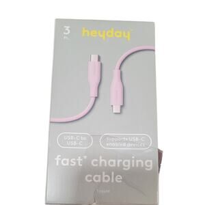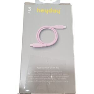 Stylish and functional 3-foot USB-C to USB-C cable by Heyday in light pink. Designed for fast charging and data transfer between compatible USB-C devices. Durable construction with flexible jacket and reinforced connectors. Ideal for phones, tablets, laptops, and accessories. UPC 198850212916.