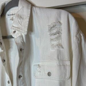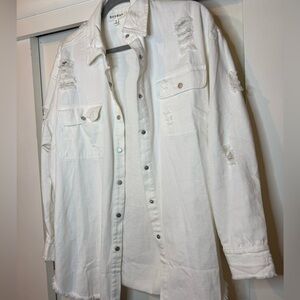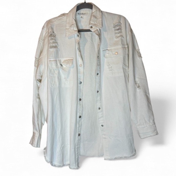 Heyday White Distressed Button-Up Jean Jacket | Oversized | NWOT