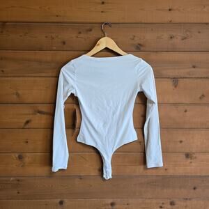 Heynuts Scoop Neck Long Sleeve Double Layer Bodysuit White Opal NWT M High Cut