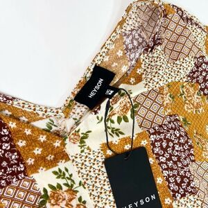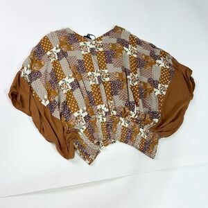 Heyson Blouse Womens Medium Brown Floral Cropped Smocked new western patchwork