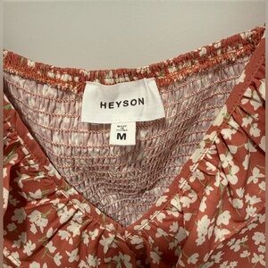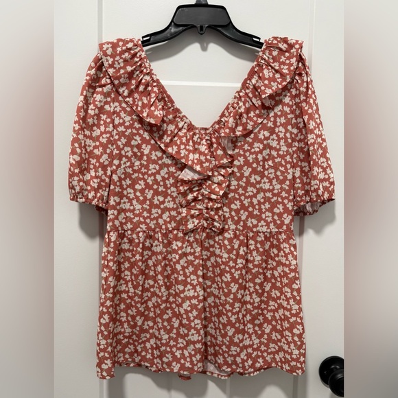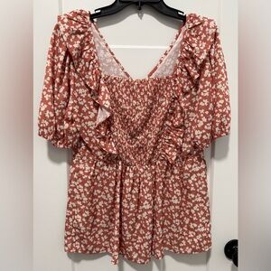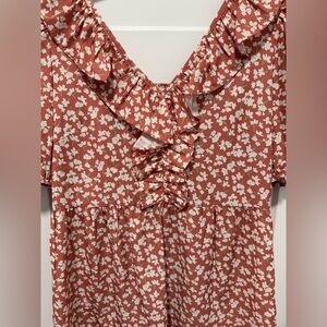 Heyson floral ruffle blouse with v-neck. Flowy with ruffles front and back.