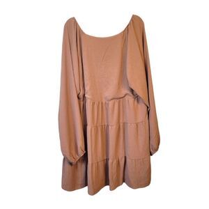 Heyson Light Brown Smocked Front Long Sleeve Tiered Dress