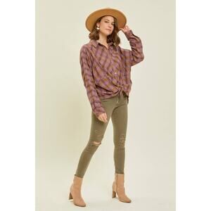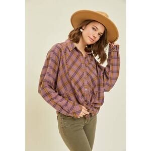 Heyson Purple Size Large Western Washed Oversized Plaid Shirt