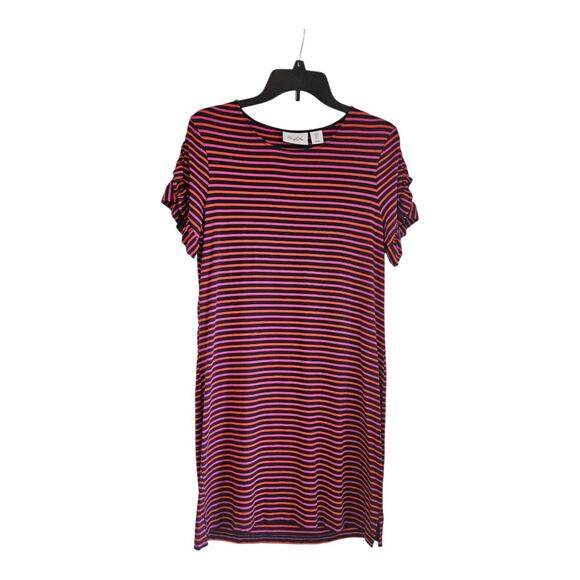 Heyton Dress Size SMALL Striped S/S Ruffle Sleeve Stretch Navy Pink Red