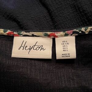 Questions? Leave a comment below! EUC size large Cute tulip sleeve navy shift dress, easy to dress up or down. Featuring mid-weight fabric and eye catching floral trim that peaks out on the flutter tulip style sleeve. Navy blue, Heyton brand,