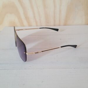 Stylish purple sunglasses featuring elegant gold accents. Perfect for adding a touch of sophistication to any outfit.