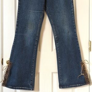 Hi Jack 90's Vintage High Waisted Western Studded Trim Lace Up Bootcut Jeans 5