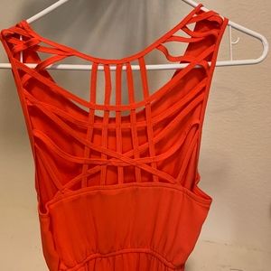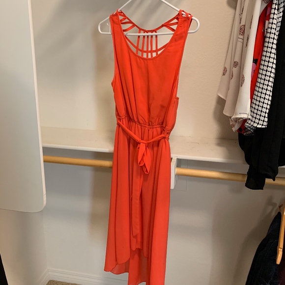 Coral hi low dress with open cut out pattern at upper back, optional tie at waist. only worn once