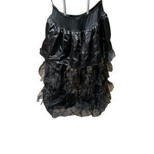 Hi Lo Satin and Tulle Burlesque Skirt Can Can Pull On Size XL Black Sexy Cosplay