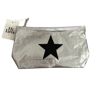 Hi Love Travel Bag Metallic Silver Star Splash Proof Makeup Cosmetics Clutch