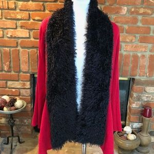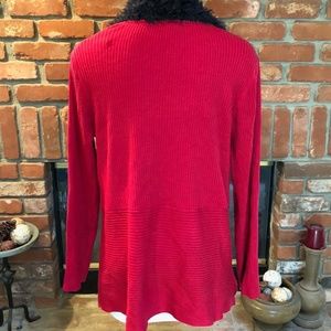 Lauren Michelle HiLo Draping L Open Red Black Faux Fur Ribbed Cardigan Sweater