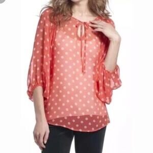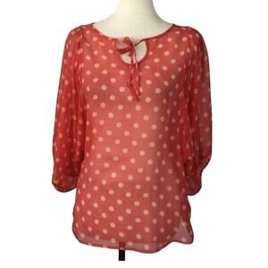 Hi There Karen Walker Sheer Peasant Top Size 6 Orange Polka Dot