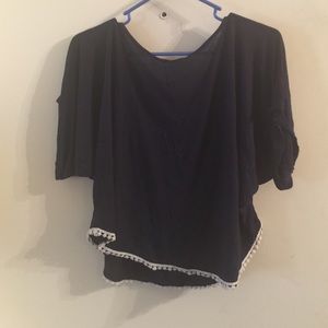 Hi low crop top with white fringe at the bottom