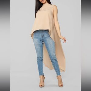 Fashion nova top with long train back in a beige color size small with tags