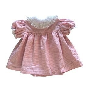 Hi-Girls vintage pink and white checked toddler dress with lace collar s…