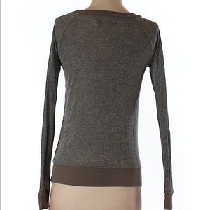 See last picture for description. **this top is on the rather thin side, more like a tee**. EUC. The front part of this top (not including sleeves or back) has a very slight sparkle to the material.