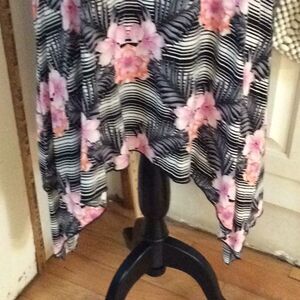 Hi Low tropical floral dress Made In USA. Packable wrinkle free beach cover up to dinner out.