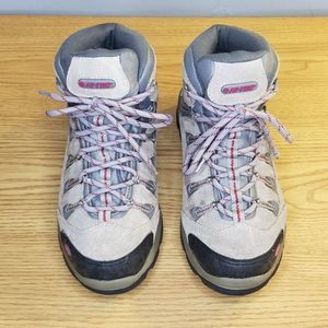 Hi-Tec Hiking Boots Women Size 8 Suede Taupe Gray Waterproof Lace Up Model# 7105