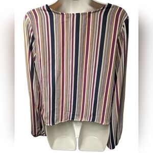 Hiatus Button Front Striped Tie Hem Long Sleeve Blouse Sz M