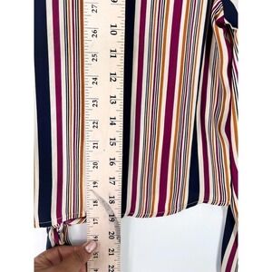Hiatus Multicolor Button Front Striped Blouse Long Sleeve Tie Hem Womens Medium