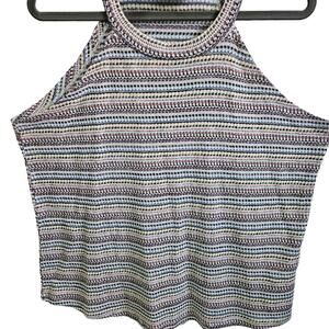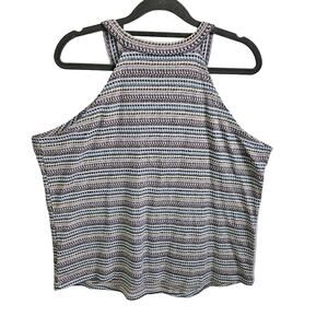 Hiatus Women's Size 0X High Neck Tank Top Multicolor Retro Knit Stripe