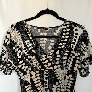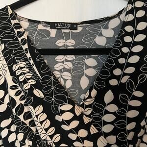 Hiatus top women’s size M vneck black tan leaf print short sleeve blouse VTG y2k