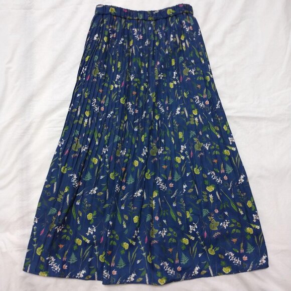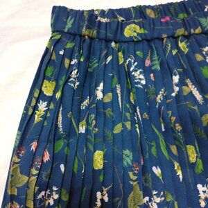 This pleated long skirt features a lovely botanical print. It has a fully elastic waist and is lined.