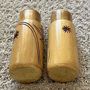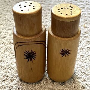 Hibiscus Atomic Wooden Salt & Pepper Shakers Mid Century Teak? Hawaiian
