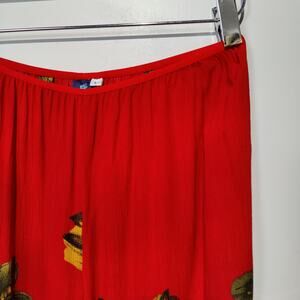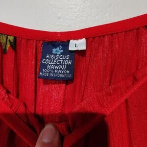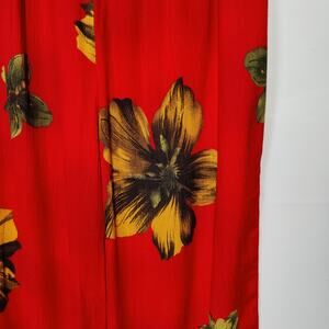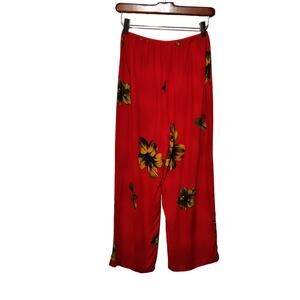 Hibiscus Collection Womens Sz L Red Floral Hawaiian Pants Cropped Flowy Tropical