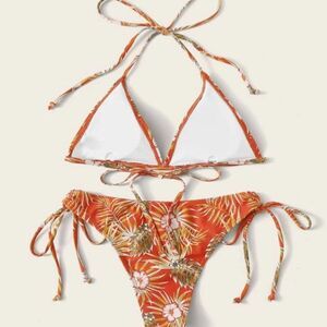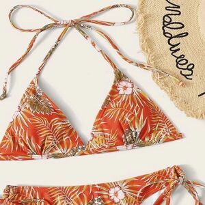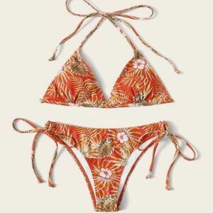 Hibiscus Tropical Print Bikini Orange Floral Med