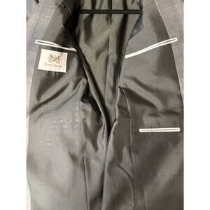 Hickey Freeman Men's Size 42 Short 100% Worsted Wool Milburn Sport Coat~ Gray w/ White and Tan Check / Plaid Business Academia Old Money Preppy Office Career Professional