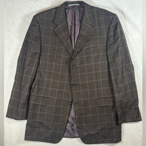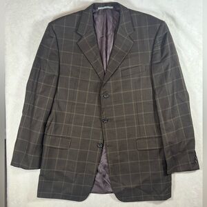 Hickey Freeman 44Long 100% Wool Made in USA 2 Vent Brown Check Sport Coat EUC