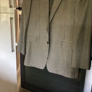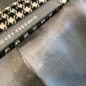 Questions? Leave a comment below! came right from the Hickey Freeman factory in Rochester New York. They have since gone out of business and it was a wonderful wonderful business to have in our delightful city. This is so gorgeous. It’s never been worn. We bought this direct from Hickey Freeman. it is a size 42 regular look at all the labels it is that beautiful classic I want to say eitherplaid. Or they call it houndstooth I’m not exactly sure but I know that it’s just a classic in any style anytime you buy this people just love seeing this. You can add a nice pair of slacks with that. A beautiful shirt of any color delightful ties if you choose, NEVER OUT OF meticulously stored climate controlled room just beautiful no smoke no pet home.