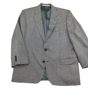 Hickey Freeman Blazer Men 41R Black Ivory Check Silk Wool Jacket Union USA VTG