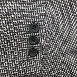 Hickey Freeman Blazer for Men in size 41R. Features a stylish black and ivory check pattern. Made from a luxurious blend of polyester and silk wool. Vintage, union-made in the USA.